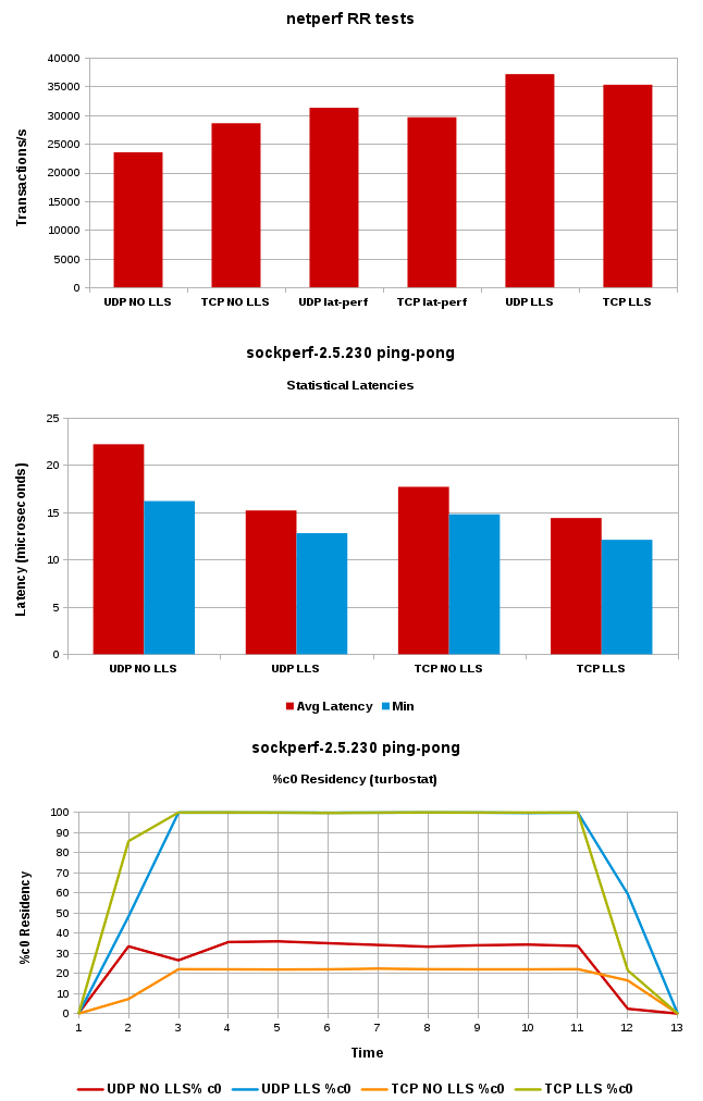 So when you use something like the latency-performance tuned profile that ships in RHEL, amongst other things, you lock the processors in C1 state. That has the side-effect of disabling turbo (see TDP article above), which is generally fine since all the BIOS low latency tuning guides I’ve seen tell you to disable turbo anyway (to reduce jitter). But. And there’s always a but. If you have a low thread count, and you want to capture turbo speeds, there is a new socket option, brought to you by Elizier Tamir from Intel, based on Jesse Brandeburg’s Low Latency Sockets paper from Linux Plumbers Conference 2012. It has since been renamed busy-polling, something I’m having a hard time getting used to myself…but whatever.